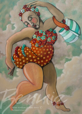 I am a gypsy at heart and this piece certainly resonated. I love the radiant colour combinations and the surrealism of the flying bathtub. Bernie’s imagination has given life to this piece where you can feel the wind stir.