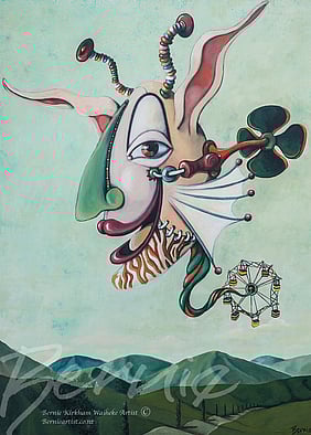 I'm Bernie Kirkham of Waiheke Island, let me guide you into a different world, captured by my imagination and interpreted on canvas. My whimsical art works will enhance your reality and transform your spaces. I am an acrylic artist based on Waiheke Island. Imaginative and illustrative works of art are my forte. My colourful paintings and distinctive style emanate joy, freedom and adventure. I'm a story teller and my paintings tell a story about the journey of life. I have been taking paint to canvas and creating for as long as I can remember! art and design is a lifelong passion.