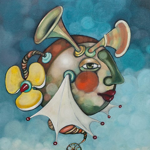 My work has been recently exhibited at ArtSelect Gallery in NewMarket and a selection remains there. My work is also available through the Little Gallery in Tirua and Whangamata. I enjoy the quirky and the fun. I explore a fantasy world where subjects tend to float surreally above an imaginary landscape. My work is crafted with acrylic paint on canvas.